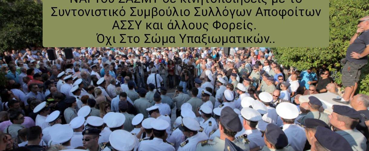Δελτίο Τύπου. Τη Δευτέρα 15 Σεπτεμβρίου 2025 και ώρα 11:00, στο Πνευματικό Κέντρο της ΕΑΑΑ, Χαλκοκονδύλη 5, Αθήνα, πραγματοποιήθηκε με πρωτοβουλία του Συντονιστικού Συμβουλίου Συλλόγων Αποφοίτων ΑΣΣΥ, συνάντηση των Δ.Σ. … Συνεχίστε να διαβάζετε το ΔΤ. Απόφαση για δυναμικές κινητοποιήσεις. Όχι στο Σώμα Υπαξιωματικών Όχι στην Υποβάθμιση..