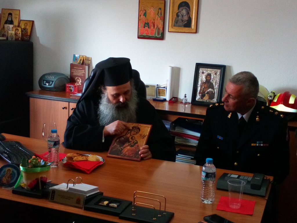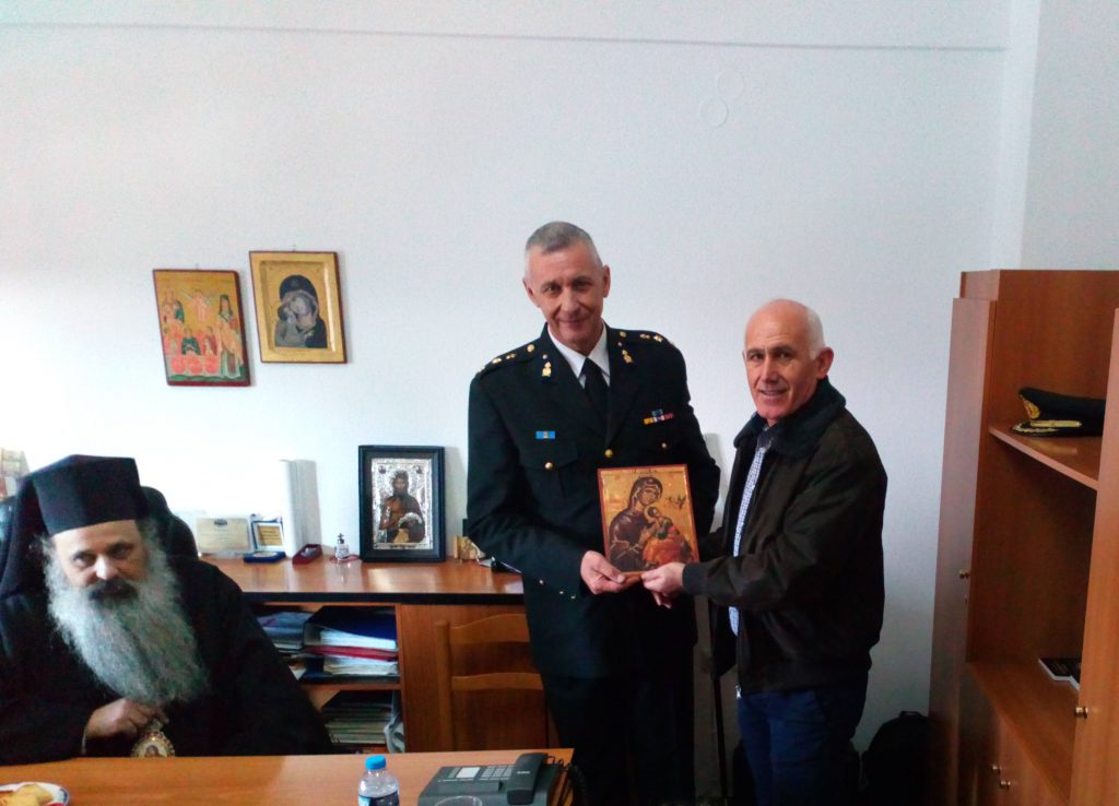 Ο Πρόεδρος και ο Γ. Γραμματέας του προσωρινού ΔΣ, εκπροσωπώντας τον Σ.Α.Σ.ΜΥ, δώρισε ως ένδειξη τιμής για την προσφορά τους στην Πατρίδα, στον Διοικητή της Π.Υ Καλαμπάκας ( Επυπυραγό Κο Τσουρλίδα Ευάγγελο) , την εικόνα της Παναγίας ‘’φοβερά Προστασία’’ και του ευχήθηκε η Παναγία μας να τους προστατεύει και να τους δίνει δύναμη σε κάθε δύσκολη αποστολή τους.