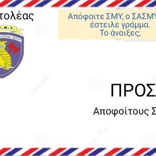 Αγαπητοί Συνάδελφοι, Μέλη του ΣΑΣΜΥ και Μέλη της Ενώσεως Αποστράτων Αξιωματικών Στρατού (ΕΑΑΣ), Με βαθύ αίσθημα ευθύνης και σεβασμού προς την εμπιστοσύνη που μου δείξατε κατά την εκλογική διαδικασία τόσο...