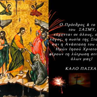 Ο Πρόεδρος και το Δ.Σ του ΣΑΣΜΥ, εύχονται σε όλους, ο Θείος λόγος, η θυσία της Σταύρωσης και η Ανάσταση του Κυρίου Ημών Ιησού Χριστού, να φέρουν τη λύτρωση στις...