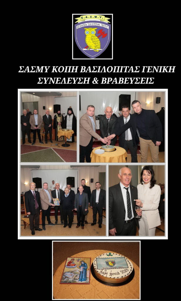 Στην εκδήλωση ο Προέδρος του ΣΑΣΜΥ χαιρέτησε τους παρευρισκόμενους, ευχήθηκε καλή χρονιά με υγειά δίνοντας και το στίγμα του συνδέσμου για το νέο έτος το οποίο είναι ανασύνταξη και μεγαλύτερη προσπάθεια για την προώθηση και επίλυση των θεμάτων που ταλανίζουν τους αποφοίτους ΑΣΣΥ. Ταυτόχρονα επεσήμανε ότι παρότι ο σύνδεσμος κράτησε τρία χρόνια χαμηλούς τόνους αποτελεί επιτυχία η πρόσκληση που έλαβε να συμμετάσχει στην συζήτηση των φορέων στην Βουλή των Ελλήνων επί του νομοσχεδίου του Υπουργείου Άμυνας Ο ΣΑΣΜΥ στην Βουλή: θέσεις προτάσεις επί του νομοσχεδίου – Σύνδεσμος Αποφοίτων Σχολής Μονίμων Υπαξιωματικών (sasmy.gr).